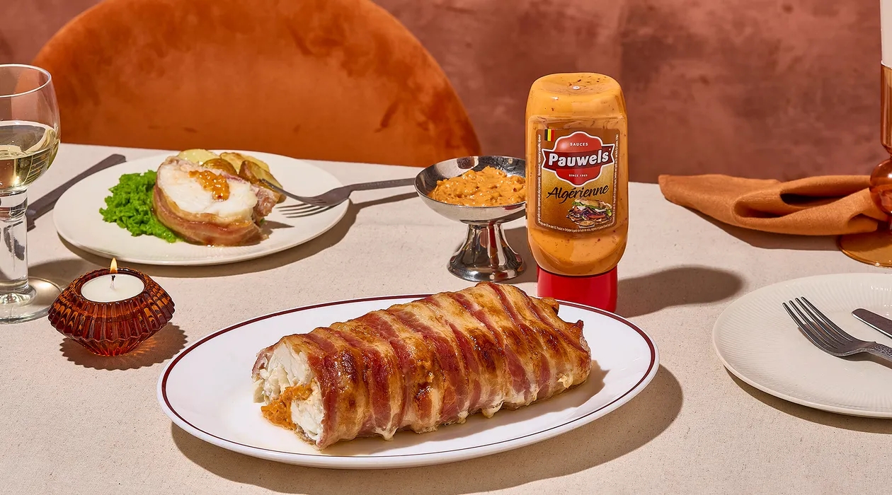 À la recherche d’un plat qui apporte immédiatement une touche de raffinement à votre table de fête ? Cette roulade de loup de mer entourée de bacon, accompagnée de la meilleure purée de petits pois, est un véritable délice visuel et gustatif. Le poisson ferme et savoureux se marie parfaitement avec la purée crémeuse, tandis que la sauce Algérienne apporte une note chaleureuse et épicée. Idéal pour partager un moment gourmand pendant les fêtes !
